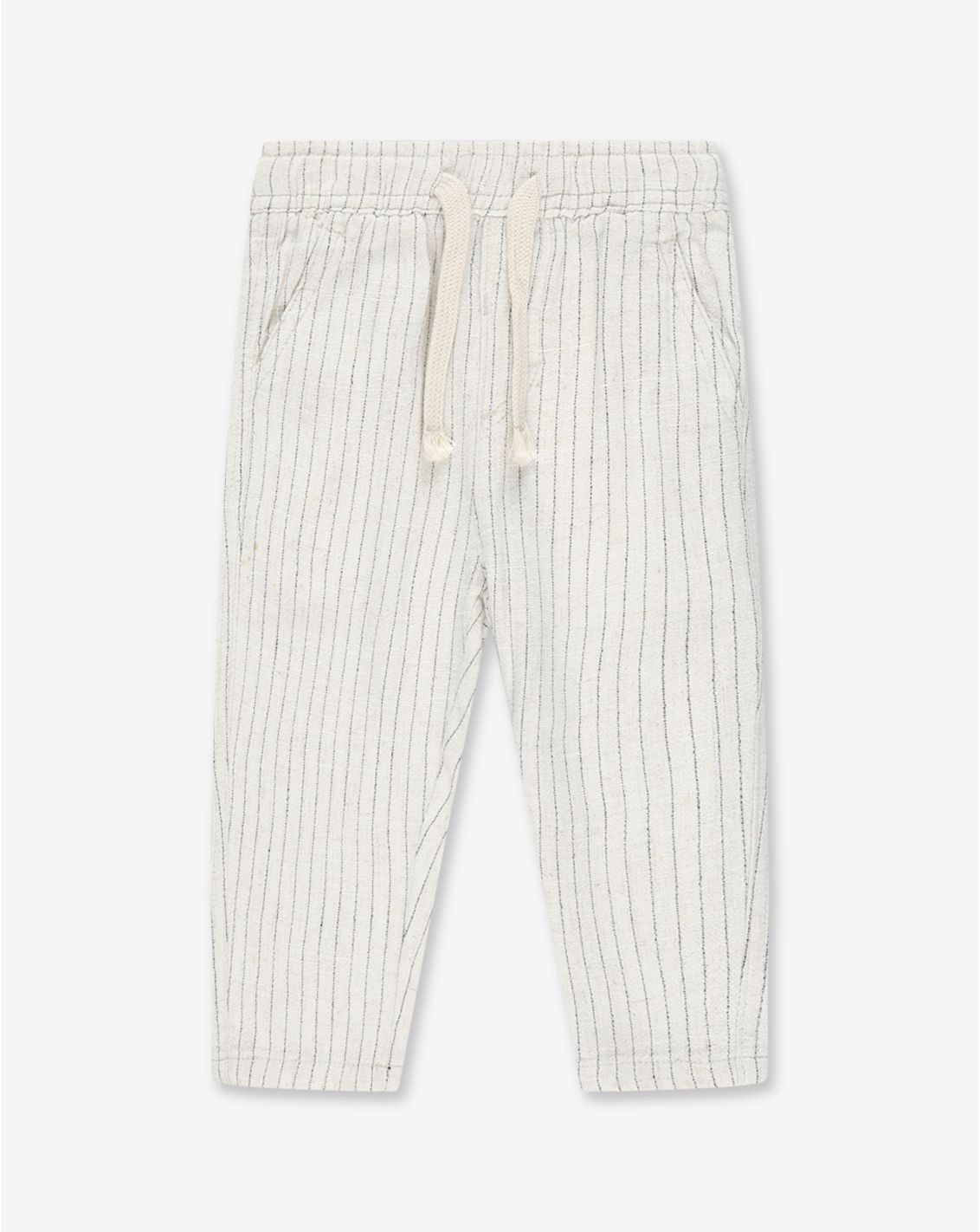 ליין חגיגי לבנים מעוצב בגזרות משוחררות בבדי פשתן ואריג בצבעוניות טבעית. מכנסי פשתן ארוכים. מגיע במידה 0-3 חודשים. הוראות כביסה בהתאם התווית. הרכב בד: 100% כותנה.